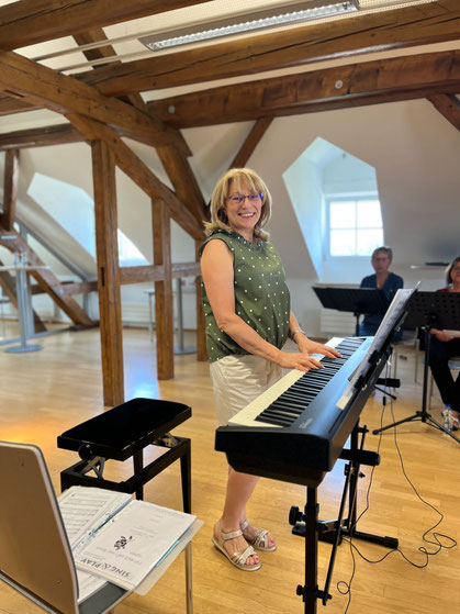 Wir werden weiterhin an unserer Atemtechnik arbeiten, da ohne Luft so gar nichts geht beim Singen. Auch Stimmbildung ist, dank unserer Dirigentin Valentina Gatsenbilder, immer wieder Thema in den Proben. Da singt schon mal der Sopran im Alt und ein Alt singt plötzlich in den höchsten Tönen.Von Lockerungsübungen über Entspannungsübungen bis hin zur Körperpercussion ist da alles möglich. Unser Repertoire wird auch künftig die verschiedensten Musikrichtungen in den verschiedensten Sprachen beinhalten. Und manchmal ist es auch einfach nur wichtig, die Gemeinschaft zu pflegen, neue Ideen für mögliche Projekte auszutauschen, nur so zu babbeln und das in gemütlicher Runde.
